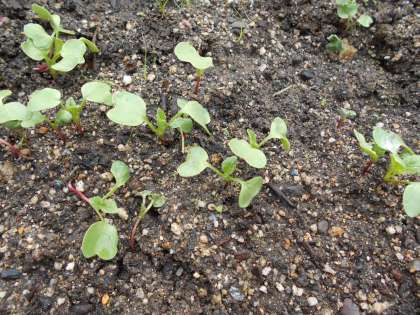 はつか大根や小かぶの芽がたくさん出てきました。