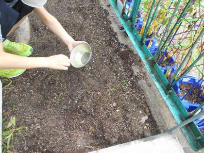 学校園の隅に,レモングラスの種をまきました。