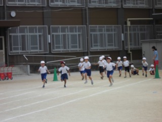 体育の時間,かけっこをしました。「もっと走りたい!」と走ることを楽しんでいました。10月には,おうちの方にも見てもらうのが楽しみです。