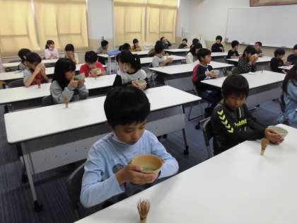 実際に茶せんを使って,自分でお茶をたてました。泡がたつように茶せんを前後に動かしました。