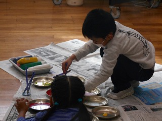 1組では,図画工作科で「カラフル色水」を作りました。絵の具でいろいろな色水を作り,チョコレートやいちごミルクなど,思った色ができました。