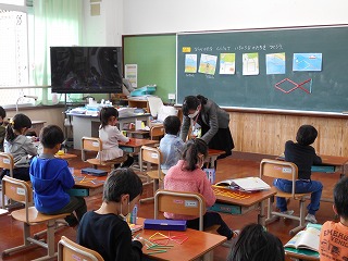 1年の算数科「かたちづくり」では,棒を並び替えてさまざまな形を作り,図形に慣れ親しみました。