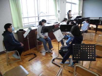 音楽では,ボイスアンサンブルの学習をしています。