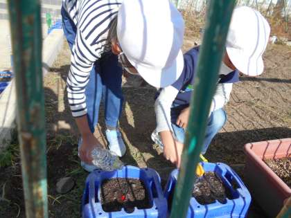 チューリップの水やりをしました。
