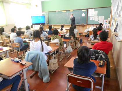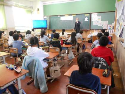 今日の学級活動では,交流学級で「非行防止教室」の学習をしました。下鴨警察署の方から,安全についての大切なお話を聞かせて頂きました。