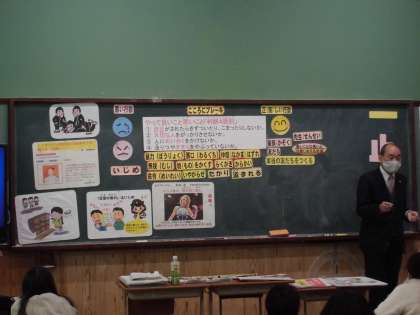 講師の方に来ていただき,やってよいこと悪いこと「判断4原則」の大切さや相手のことを考えない行動が,どんな事件を引き起こすのかなどたくさんのお話を聞くことができました。