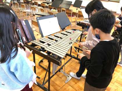 音楽室で合奏の学習をしています。