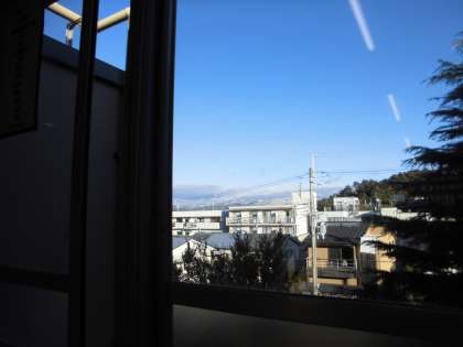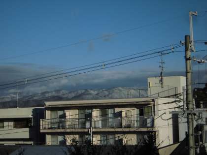 教室から見える山々が,雪をかぶって白くなっていました。