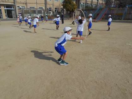1年生の体育科で「なわとび」をしています。
