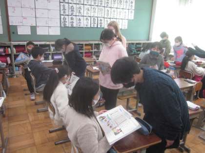 外国語活動では,グループごとにものの値段を考え,お互いにたずね合う練習をしました。お店での注文は生活に身近な内容なので,覚えて使えるようにしたいという振り返りが多く見られました。