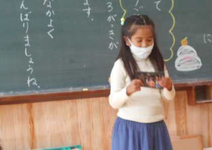 冬休みのことについてスピーチをしました。