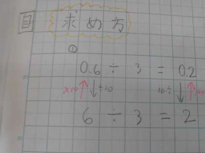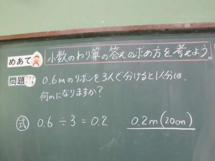 今日は,小数のわり算の答えの求め方をみんなで考えました。