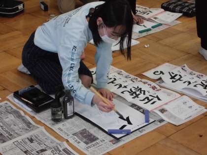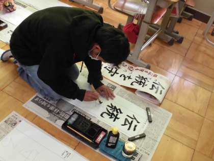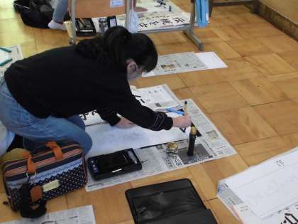 今年は教室でやったので,床を使って書く人,机を使って書く人と,自分でやりやすい姿勢を選んで書くことができました。