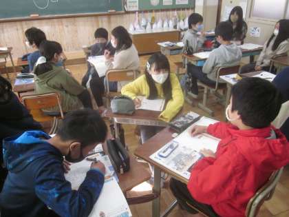 道徳の学習で「くずれ落ちただんボール箱」という教材を読みました。登場人物の気持ちを考えるときに,円グラフを使って,どんな気持ちがどれくらいの割合であるのかを交流しました。グループごとにいろいろな考えが出て,深まりのある話し合いができました。