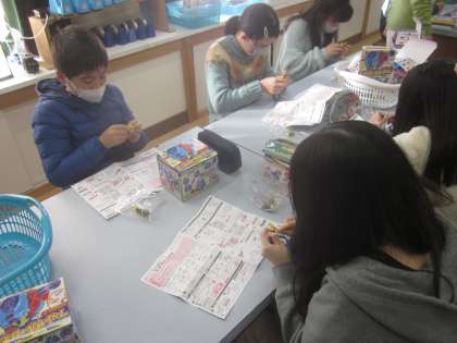 電磁石の学習はキットを使います。今日は導線を巻いてコイルを作りました。何度も巻きなおす子もいて苦戦する様子も見られましたが,何とかみんなが巻き終わることができました。キットを使ってどんな学習ができるのか楽しみです。