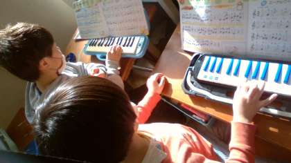 コロナ対策のため,3学期は吹かずに授業を進めています。