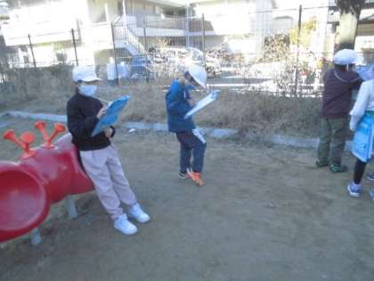 生活の学習では,冬を見つけに児童公園へ行きました。