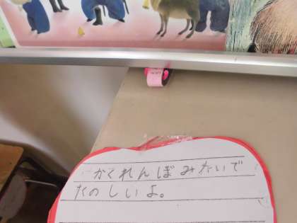 すきまちゃんを見て おもったことを かいて ともだちにつたえました。