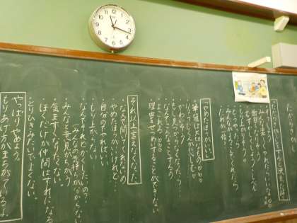 「たからさがし」は,みんな遊び係になった「ぼく」が,宝を隠しに行こうとした時に,仲間から「〇〇くんの筆箱も隠したら盛り上がるよ。」と誘われるお話です。「みんなが楽しめないといけない。一人でも悲しむ人がいたらそれは間違っている。」「仲間から「空気の読めないやつだな。」と思われて仲間外れにされても,正しいことは言わなくちゃ。」とそれぞれ「ぼく」の立場になって考えていました。