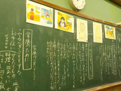 お手伝いをした分の請求書を書いてお母さんに渡し,お金をもらった「ぼく」。でも,お母さんからも請求書が来て,そこにはぼくが今までしてもらったことが書かれていたのに,請求額は「0円」だったというお話です。「してもらって当たり前と思っていたことは,当たり前じゃないんだと気づいた。」「私も家族の一員として,お手伝いをしたり出来ることをしていきたいと思いました。」と感想を書いていました。