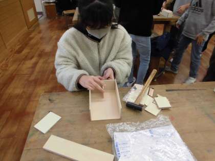 作ってみて,木の厚みがあまりないので,釘で打つと板が割れたり,ボンドだけでは接着が弱く,そこが難しいようです。