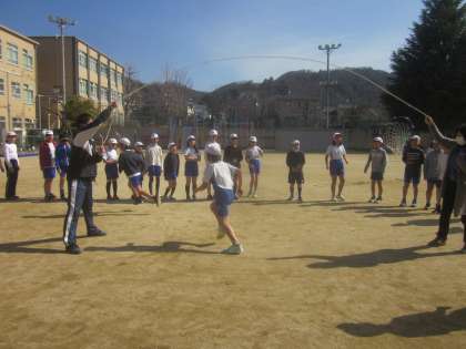 体育の時間に,5分間で何回とべるのかという記録に挑戦しています。前回は125回,今回は180回でした。休み時間も練習する子がいるので,前の子に続いてとべる子が増えたり,とぶまでの時間が短くなっている子がいたり,それぞれに成長が見られました。