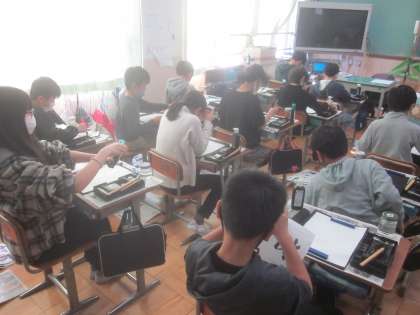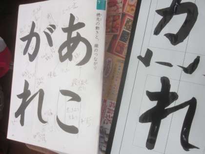 ひらがな4文字を書くむずかしさがありましたが,見本と自分の字を比べ,苦手な所を練習していました。筆運びの様子からは緊張感が伝わってきました。
