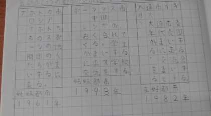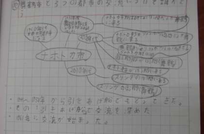 社会科の学習では,舞鶴市と他国の都市がどのような交流をしているか調べました。