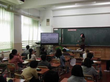 栄養教諭の梅原先生に,「食べ物の旬」について教えていただきました。