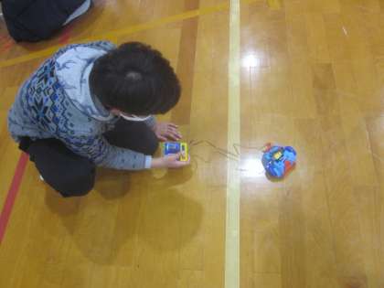 学年合同でお楽しみ実験をしました。キットを作り上げて,ラジコンのように操作をしながらボールを操って遊びました。早く組み立てた子は,まだ作れていない子の手伝いをして過ごしました。寒い中でしたが,楽しそうに活動していました。