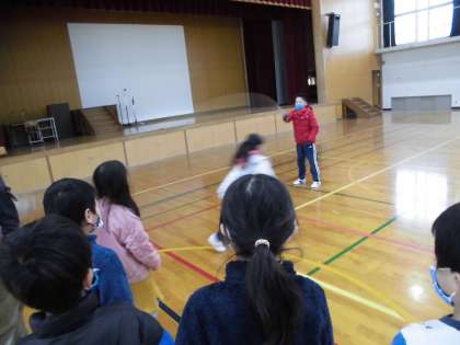 体育委員会主催による大なわ遊びが学級ごとに行われました。大波小波のグループと八の字グループにわかれ,1分間に何回跳べるか挑戦しました。ちょっと怖い思いもしながら,応援し合って頑張りました。