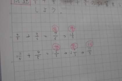 整数が混ざった場合は,仮分数になおして計算ができないかなと意見を出し合い,