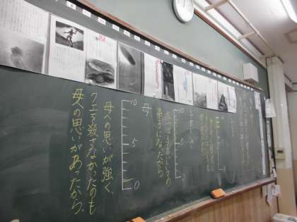 「おとう,母,与吉じいさの中で,誰が一番太一に影響を与えたか」とみんなに聞くと,「おとう」と「与吉じいさ」と答えた人が多かったですが,中には,「母」と答えた人もいました。