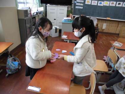 お店屋さん役とお客さん役に分かれ,楽しくやり取りできました。