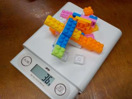アルミホイルや粘土の形を変えてはかりで重さをはかりましたが,「ブロックでもしてみたい。」という意見が出たので,ブロックでも試してみました。「カップに入れても,恐竜の形を作っても,ブロックの重さは一緒だったよ。」と,予想通りの結果が出てうれしそうでした。