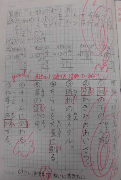 算数以外には,理科の実験の様子,社会で学習した舞鶴市の国際交流などについて書いている子がいました。