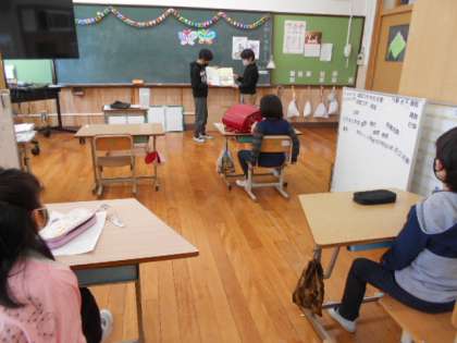 今日は,朝に図書委員会の5年生が「読み聞かせ」をしに来てくれました。