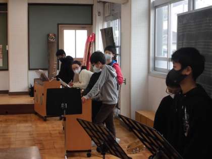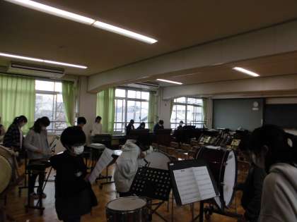 様子を見に行ったときは,各楽器に分かれてみんなが一生懸命練習をしていました。
