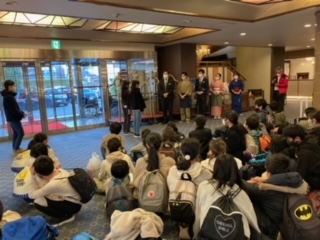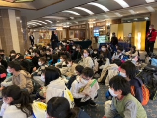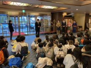 楽しみにしていた旅館に到着しました。入館式をしました。