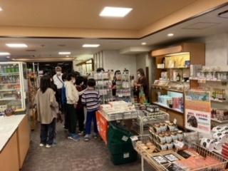 お風呂に入りました。広いお風呂は、とても気持ちが良かったそうです。入浴後は、旅館で2回目の買い物をしました。