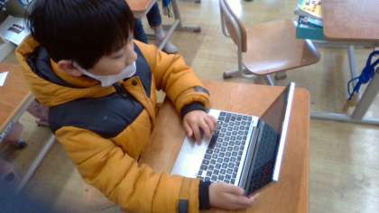 2年生の子どもたちにはキーボード入力はなかなか難しいことですが,