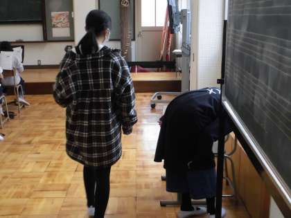 子どもたちは一斉に体育館を出ていき,一生懸命隠された折り鶴を探していました。