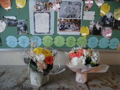卒業する6年生の子どもたちに,卒業お祝いのお花が届きました。