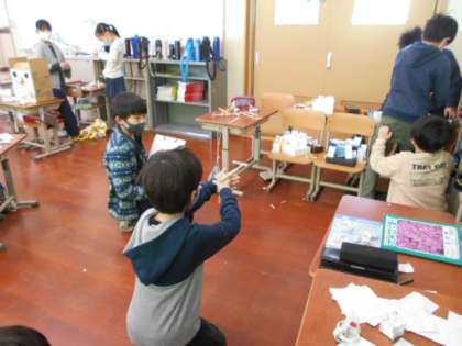 今日は,4年生のみんなが企画したお楽しみ会に参加し,一緒に楽しく遊ぶことができました。