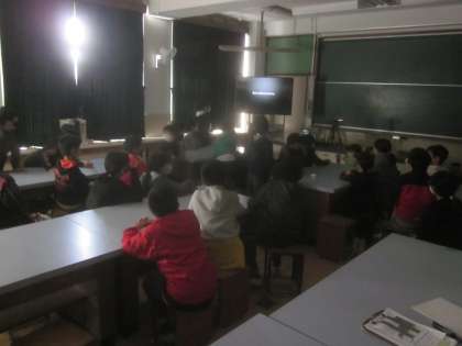 午後からは「脱出ゲーム」をしました。グループで協力し,クイズを解きました。難しい問題はヒントをもらって解いていました。