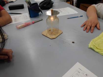 6年生の理科「ものの燃え方」の学習で実験をしました。