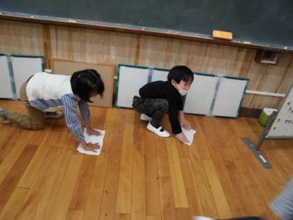 2年生から6年生までが,1年生にそうじの仕方を教えて一緒にそうじをしました。