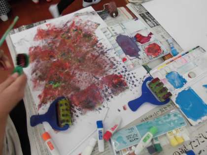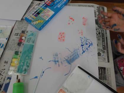 今日は絵の具を使って,いろいろな表現の仕方を試し,作品にするという活動を行いました。