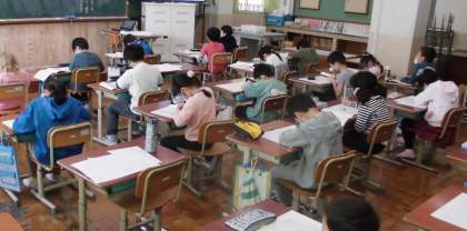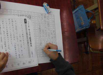 まずは,姿勢。足の裏をピタッとつけ,背筋を伸ばして行いました。
