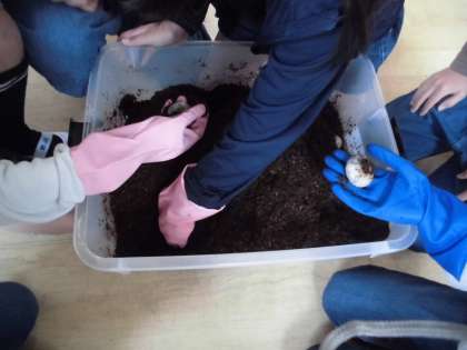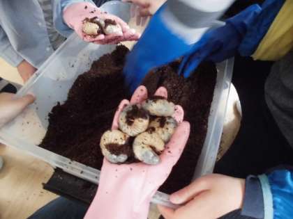 カブトムシの幼虫の観察の様子です。